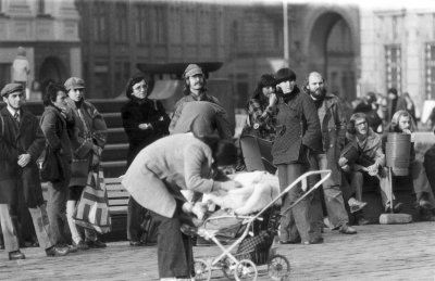 And why does Lumír Hladík collaborate with Jíří Kovanda on this exhibition? The reason is the long-lasting friendship between the two men, to which not even 35 years or 7000 kilometers posed as an obstacle. When preparing this project, it was discovered that Hladík's monochrome hangs in Kovanda's living room right next to the documentation of the latter's performance Untitled (Old Town Square, 23 January 1978) with Hladík among the surprised audience, from which Kovanda simply ran away instead of doing an interesting performance. Moreover, Hladík has had documentation of Kovanda's performance Waiting for someone to call me (1976) on the wall in his living room for years. These are not the only points of connection between their oeuvres. In the early phases of their careers, they engaged in intensive communication and collaboration. Since the mid 1970s, they participated on each other performances as audience or participants. Hladík's departure for Canada interrupted precisely what we are trying to take up today in the SVIT. The exhibition is an attempt to reinsert Hladík's work, which remains almost unknown in the Czech Republic, back into the context of the Czech performance art. Its encounter with the already famous early work by Jiří Kovanda is an attempt to show that performance art in the 1970s occurred both in private dialogues and group encounters within a peculiar community the attitudes of which disrupted the anxiety of the period of “normalization”. For the Kovanda fans and experts we have a surprise – so far unpublished photographs from the author's archive.