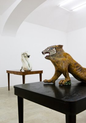 One of the scupltures resembles a lion which majestically steps forward; the back part of its body is however paralyzed, shapeless and weak; it drags it behind like a cancerous burden. How far can it get in such a state? Will the paralysis not spread to the rest of its body if it does not pay attention to what it leaves behind? Has not the time come for us to turn and come back to the forgotten, repressed, old? Can we know where we are going if we don't know what we are dragging along with us?