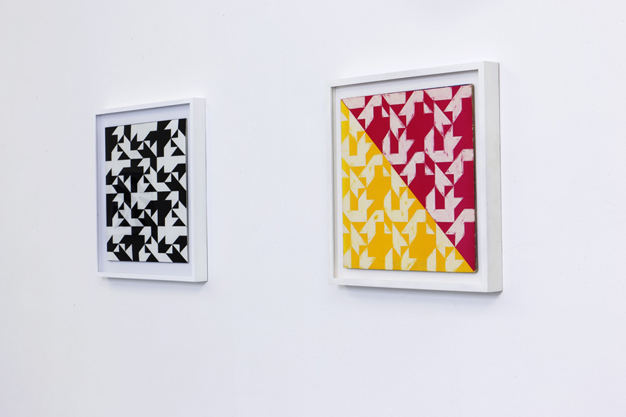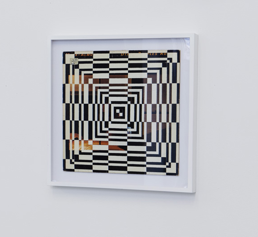 Inner Sleeves brings together recent work by Ajit Chauhan and Coracle Nestjob, two artists from the San Francisco Bay Area. Chauhan’s drawings are made by erasing selected portions of record album covers in precise geometric patterns. By using a found surface and palette, Chauhan’s creative scope is fundamentally limited; however, within these givens, he derives a fantastic range of oscillating and pulsating fields. The patterns, which call to mind the formalist abstractions of Bridget Riley and the dynamic art of the Brasilian neoconcrete movement, might also be seen as expressing the musical vibrations embedded within the records themselves. Indeed, Chauhan’s method of erasing to reveal an image, which recalls on the one hand the classical trope of sculpture as a process of removing material to find an inner essence, also echoes the industrial method of producing vinyl records by scoring into a flat surface.