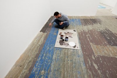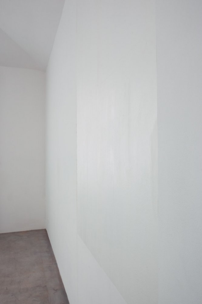 Recently, Budny's language has appropriated other everyday materials and his work in general has become more abstract. Like in this year's exhibition at Kunstverein Düsseldorf, what is at stake at Svit is space itself. The aim is not an institutional critique but the putting forward of the inconspicuous materiality of the gallery itself, which during the usual gallery traffic remains in the background – light, shadows, crevices, unevenness of the walls. Budny either directly intervenes into the physical space of the gallery to emphasize its details or places a minimalist object as an intuitive commentary on its materiality.