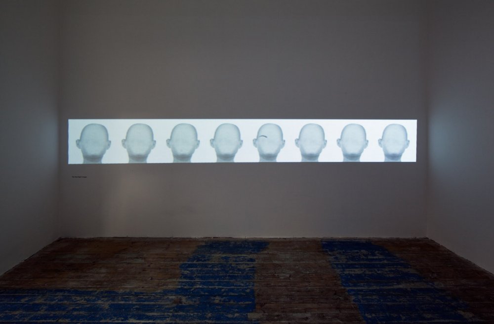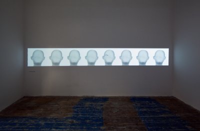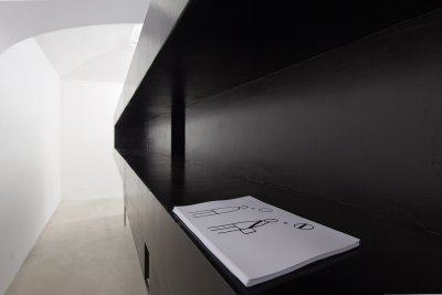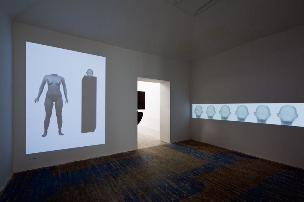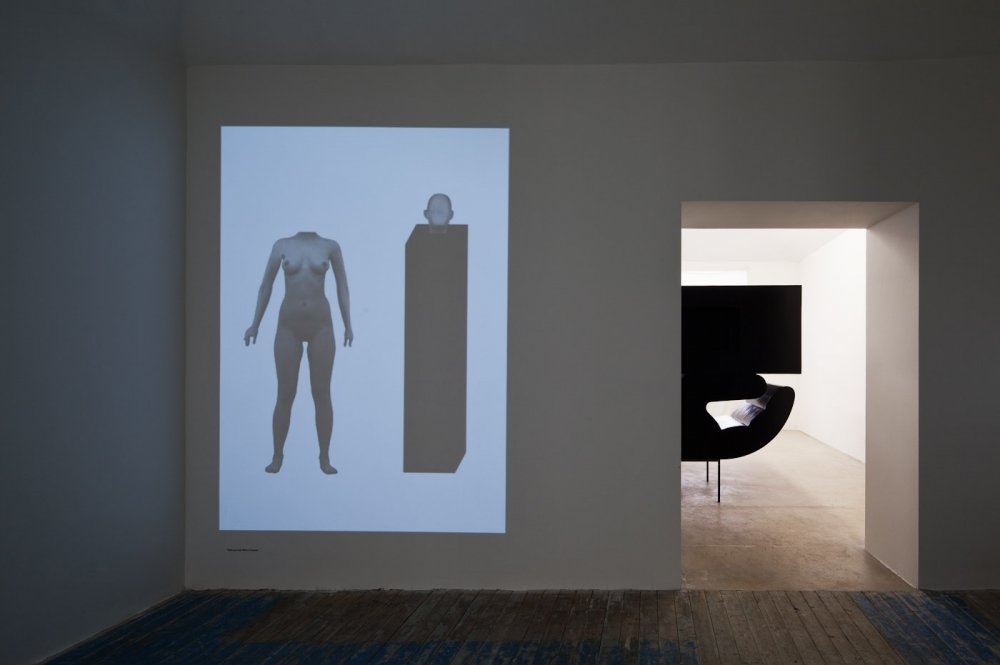 I was initially contemplating whether I’ll manage going from Brno to Prague right after my return from Venice at night and a day earlier … But in the end I could not resist – and it was the right decision having this new experience from this year’s Venice Biennale because also there we could quite often see what contains, in my opinion, truly original essence – authentic creation by Monika Zawadzki, new re-evaluation and interconnection of two spheres, which are key for art of the 1960s and 1070s in a new and current context. Of course back then, they were the sternest images of reduction and dematerialisation, which included within the scope of sculpture first minimalist and shortly after even conceptual ways of articulation created in the most radical cases only by verbal formulation. Today these are classical solutions the repetition of which would be pointless. After all, even the founders of both spheres gradually added other certain aspects – for instance colour and some conceptualists also space. Monika accepts the existing changes in art during the past several decades; she naturally accepts even the post-modern lesson and searches new possibilities of using the language of geometry (which has been quite exhausted in purely aesthetic designs). And she finds her own image of conceptual semantics adherent with a certain relation within the scope of each individual work. This way a “statue” which is at the first glance reductive, robust and quasi-minimalist and takes up practically the whole room, is the so-called “en detail” composition of spatial structures of several geometric elements, however its actual message is articulated through the relationship of a purely geometric form at the top and a conceptual semantics on the bottom part, created by an extremely conventionalised, character reduced hand form. The message of this artist is primarily the relationship between the purely reduced form and the semantic form. At the same time it is just the choice of hand that is truly the “significance par excellence”, because it is the hand that brings the maximum amount of connotations, references and relationships. If during a large sculptural realization we perceive also this sui generis robustness as one of the connotations, then in its loop-like repeating video, we see, on the contrary, the most delicate possible intervention: in the anonymous, so-called “symptomless, generally human” face the only geometric form are the eyebrows accentuated in black – that shifts, however, from one sequence to another and this way this geometric form is maximally subtle. But perhaps exactly the subtle relationship of the “portrayal semantics” as a human face and its commenting by this free, minimally geometric intervention, is once again that exact relationship that the artist wants to thematise. And in an even more playful way she starts her subtle significance in a projection where one female body remains without a head – and this head, once again anonymous and symptomless acts as a bust on a pedestal standing next to it, once again with a maximum amount of connotation! Another communicative enlightenment of the exhibition came about when the artist asked for “intervention” by an artist already internationally reflected – and Dan Perjovschi gave her one drawing for the time of the exhibition that she could use in any way she liked – hand out copies to visitors or perhaps have it printed on t-shirts! It is another implication of the important context for the artist alone and at the same time it is a reflection of her issues in the author’s lapidary drawing form.
