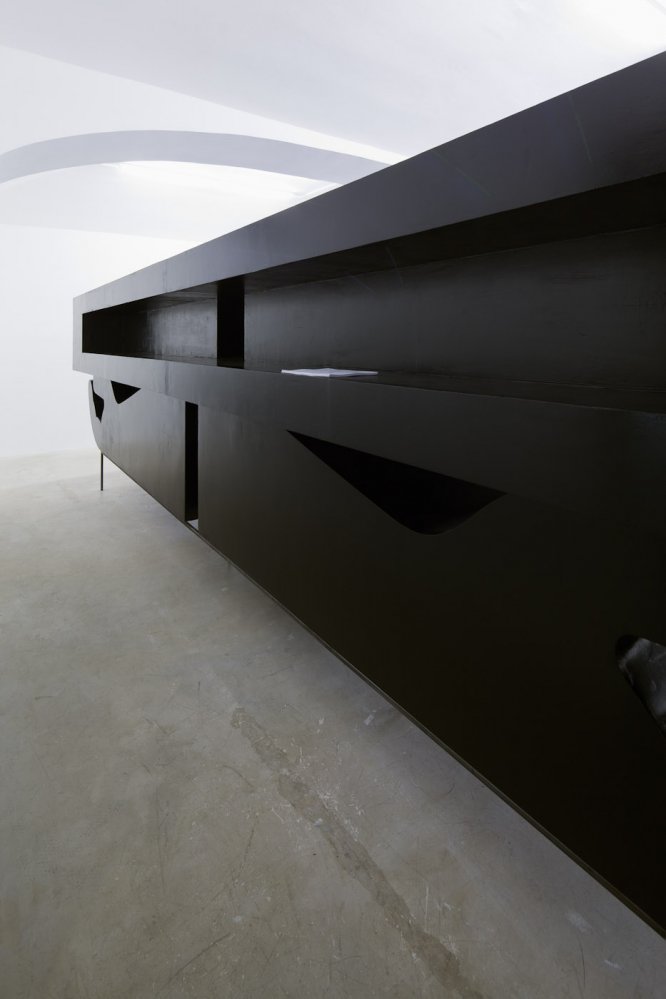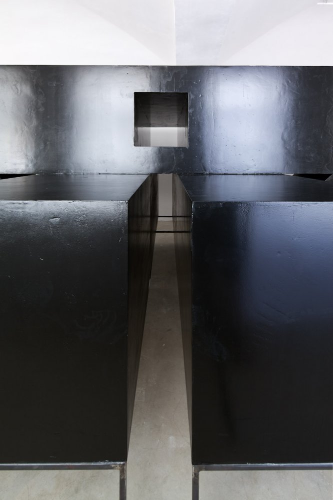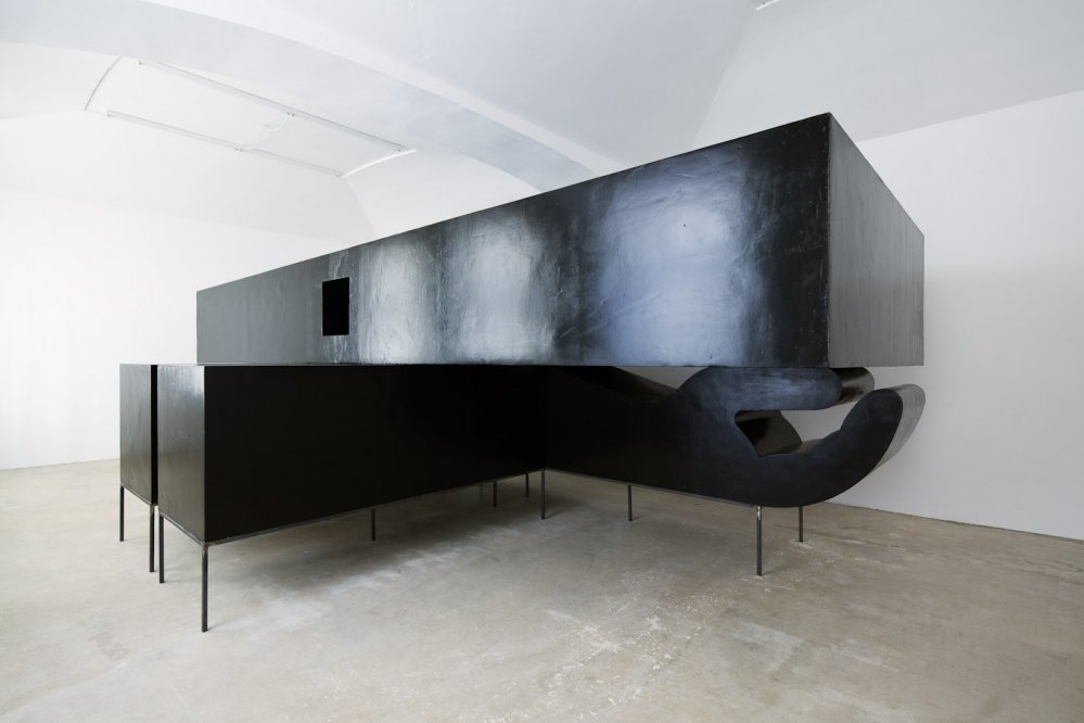 styrofoam, black glossy paint, metal construction