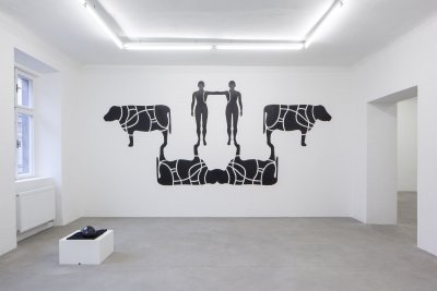 The Slice of the Polish author Monika Zawadzki is not only a black mass, but just like the silhouettes of the live beings, which are so characteristic for her work, it is also the reflection – shadow of the human / live community. The reduced colour and the minimalized, almost alphanumeric form, which are typical for the work of the author, refer to a certain form of universalness. The hybrid and genderless creatures, rid of all individualisation features, can be perceived, on the one hand, as a projection area, and on the other hand, however, one cannot resist their material nature, which often makes them almost dreadfully present. Nevertheless, we are confronted with a slice which is rather a silhouette – a shadow of the slice itself. Perhaps that is the reason it evokes so many emotions in the famished.