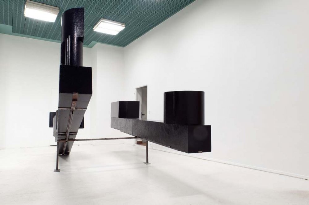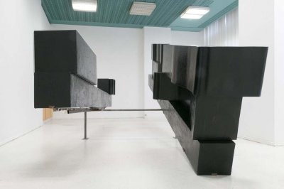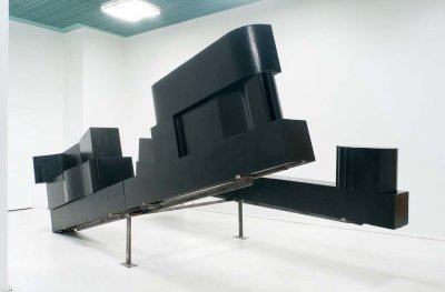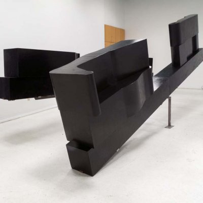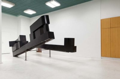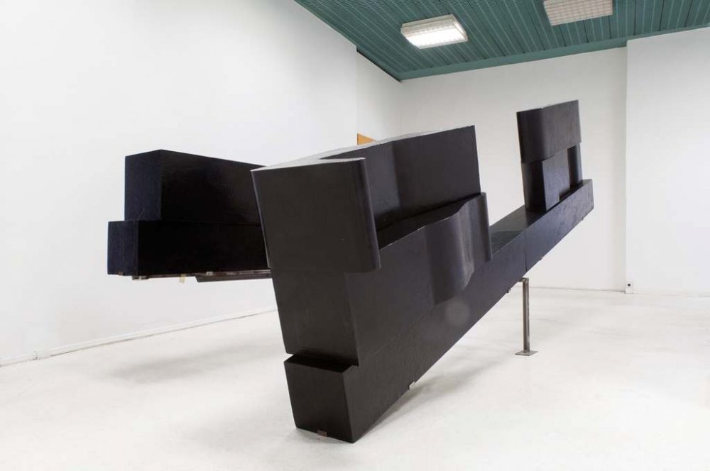 The monochromatic, sparse of form sculpture, made of simple elements, is not