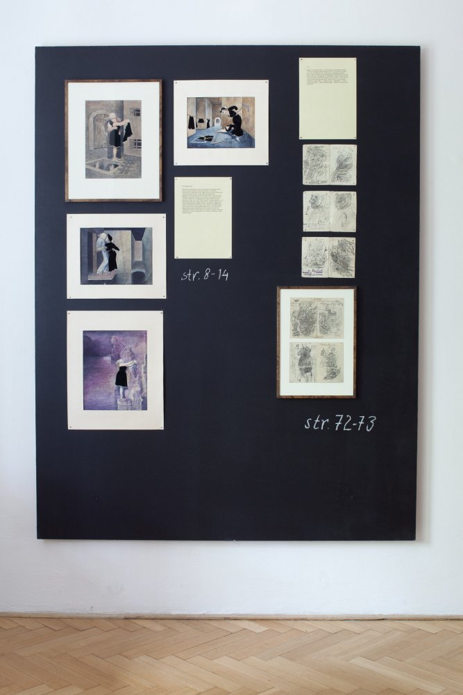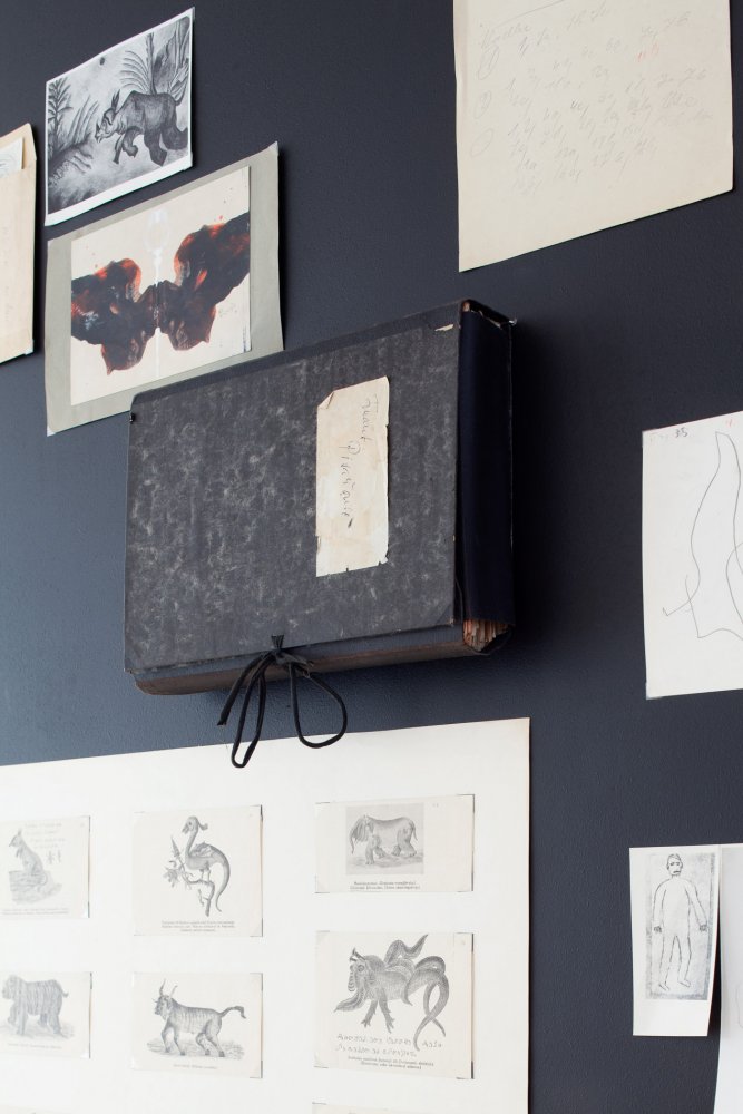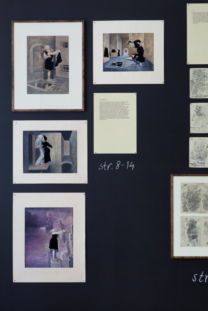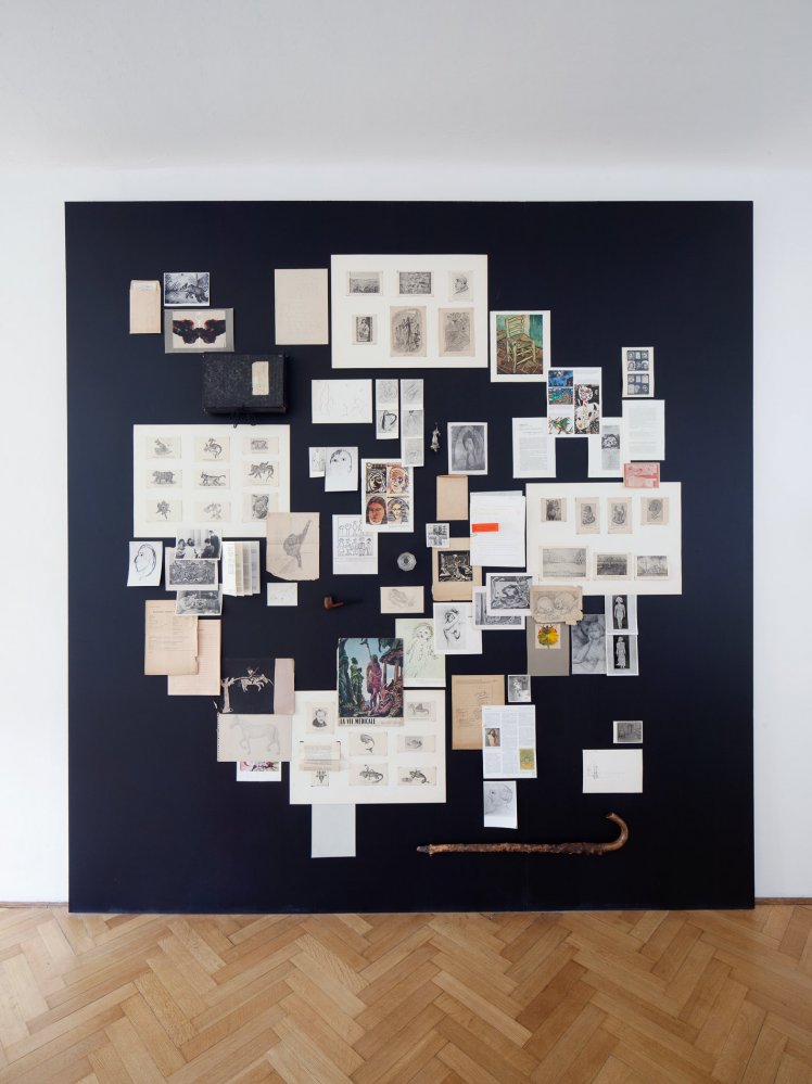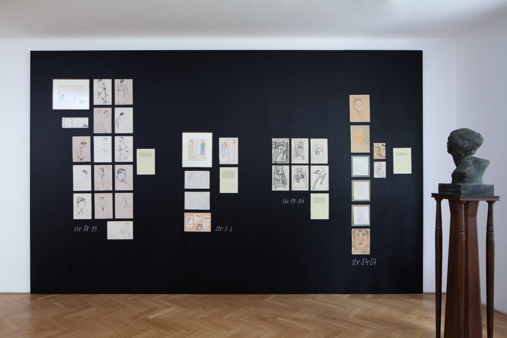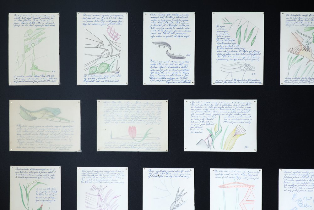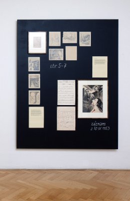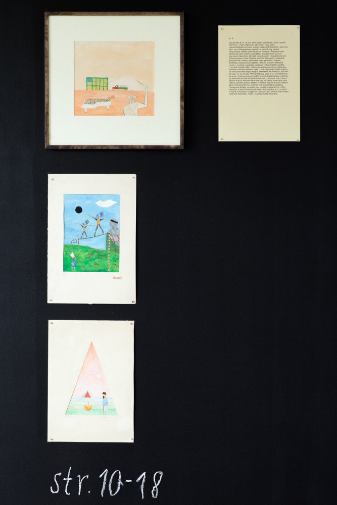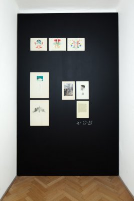 The exhibition presents a collection of works made by patients of the Czech psychiatrist František Písařovic in the stage of its discovery. The works originally used for diagnostic purposes are shown in the ambience of emulated study room and are combined with the psychiatrist's various notes, texts and numerous documentations in a structured, spatial collage.