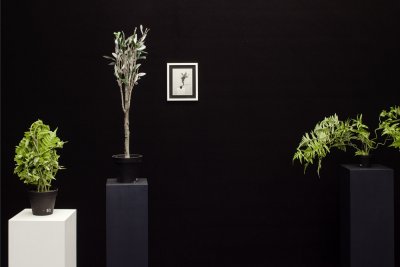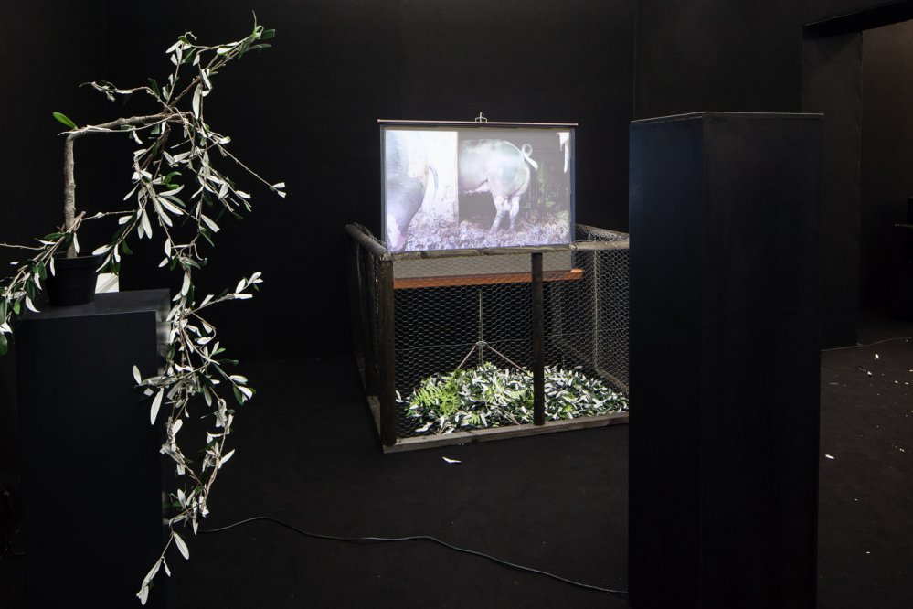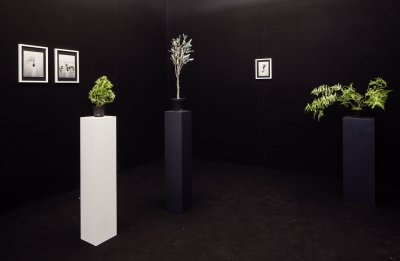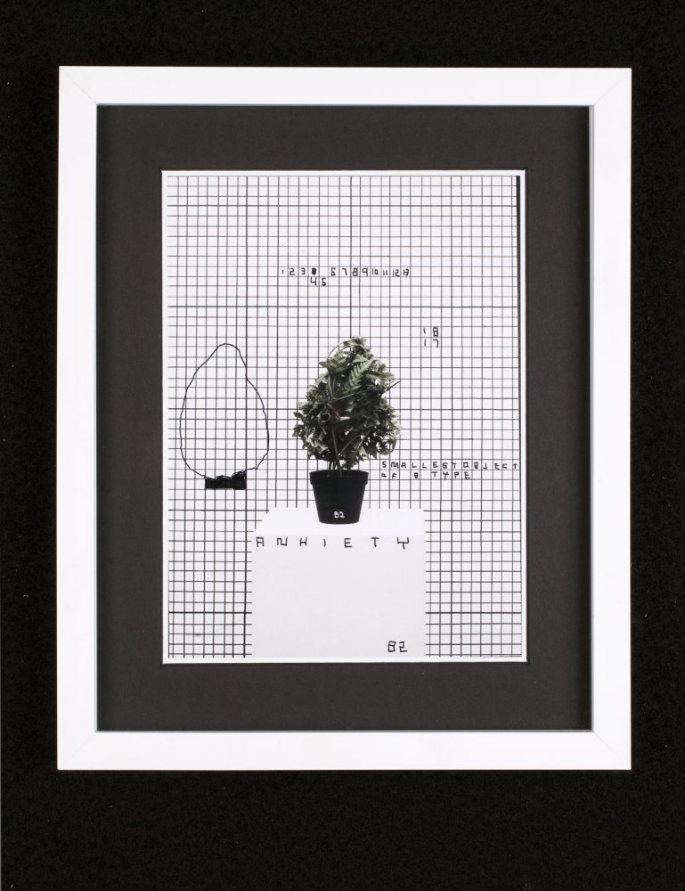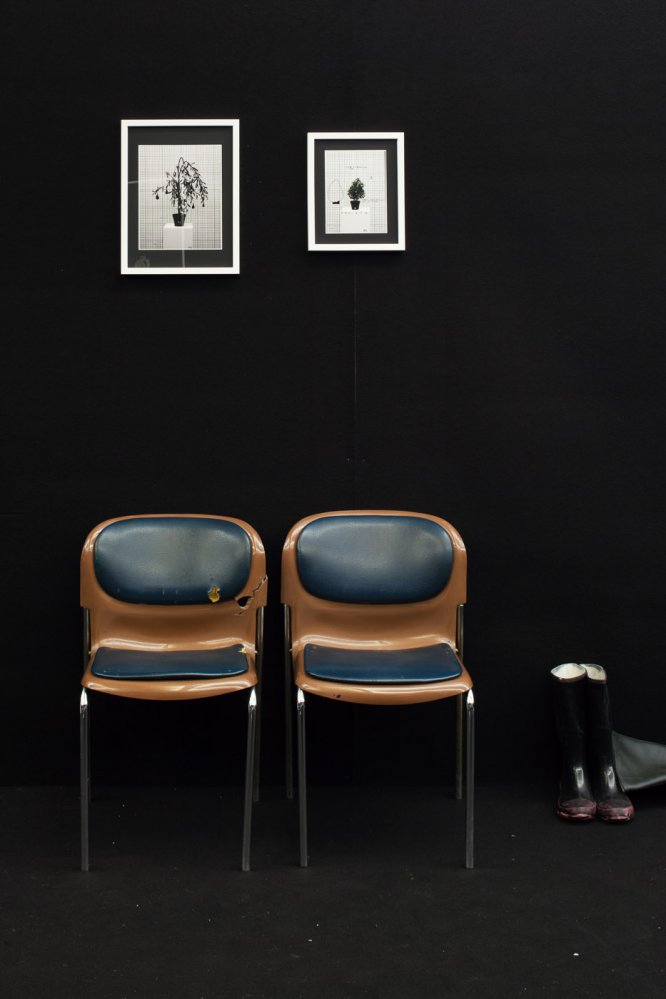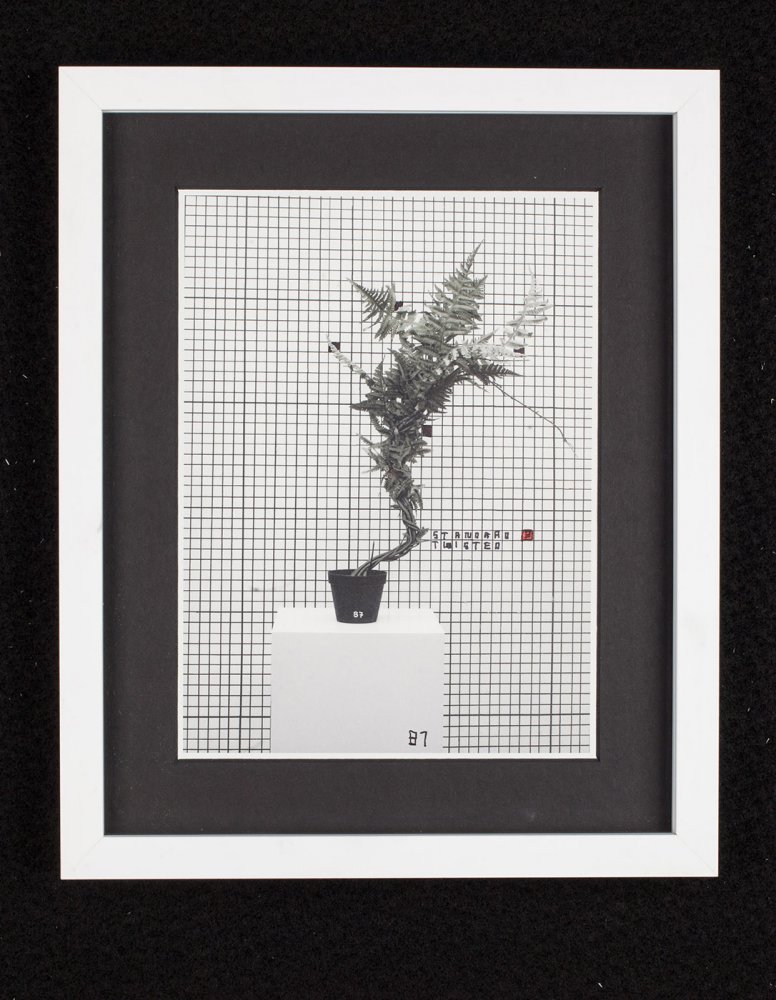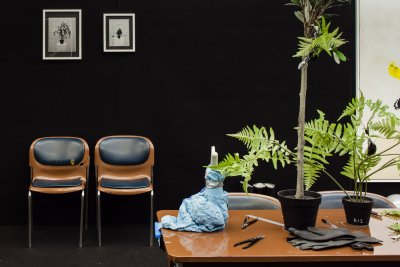 The installation “Task Dependence of the Effect of Standards on the Perception of a Series of Objects” in the SVIT relates to several different topics. In the forefront, stands Zipp’s interest in research in the area of psychophysics, specifically in the relationship of man to plants. The question is to what extent is it possible to “transfer” human feelings and perceptions to plants, creating a symbiosis with man that is, just like the relationship between man and animals, an inseparable part of life. A video with pigs feeding on biological waste refers to the cycle of exchange in organic elements. The central area of the installation is devoted to the research of various psychological states such as fatigue, fear, melancholy, and their relationships to the origin of emotions and possible psychological disorders. In SVIT, Zipp creates a research laboratory linking temporary projects with artificial plants and musical performances. The photo-collages exhibited originated on the basis of the performance done on November 27, 2013 with students from local art schools.