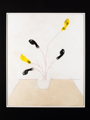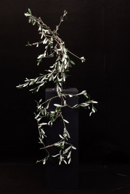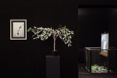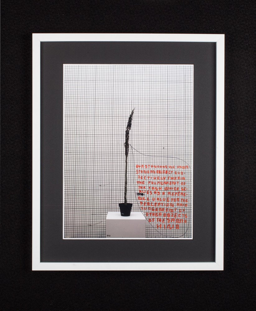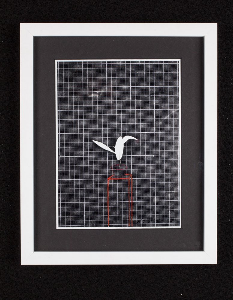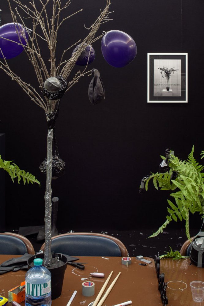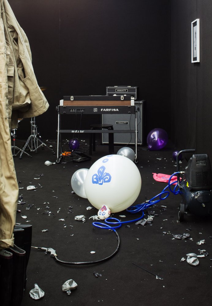 The installation “Task Dependence of the Effect of Standards on the Perception of a Series of Objects” in the SVIT relates to several different topics. In the forefront, stands Zipp’s interest in research in the area of psychophysics, specifically in the relationship of man to plants. The question is to what extent is it possible to “transfer” human feelings and perceptions to plants, creating a symbiosis with man that is, just like the relationship between man and animals, an inseparable part of life. A video with pigs feeding on biological waste refers to the cycle of exchange in organic elements. The central area of the installation is devoted to the research of various psychological states such as fatigue, fear, melancholy, and their relationships to the origin of emotions and possible psychological disorders. In SVIT, Zipp creates a research laboratory linking temporary projects with artificial plants and musical performances. The photo-collages exhibited originated on the basis of the performance done on November 27, 2013 with students from local art schools.