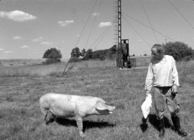 Wilhelm Sasnal's first feature film shows two days in the life of an unnamed village, most likely located in Poland. The time in which the story is set is never specified, but there are hints that it is sometime after World War II. The characters are the eponymous Swineherd employed by a crude and brutal Farmer, the Farmer's sheltered and mistreated daughter Kaśka, a village girl named Julka, and a mysterious drifter with a guitar whose presence annoys the locals. Residents of the village are all alike in their fear and hatred of strangers, and in the contempt they have for one another. This is probably due to their unfulfilled longing to escape: no-one makes any effort to leave, yet prevents everyone else from doing so. The world in Sasnal's film is a dunghill of debased rural life. Houses resemble prisons, barns are hiding-places for looted goods, strangers get locked up in barns, graves contain gold instead of bodies. The air is thick and sticky; flies swarm everywhere. Clouds of heavy smoke rise in the distance amid the baying of dogs.